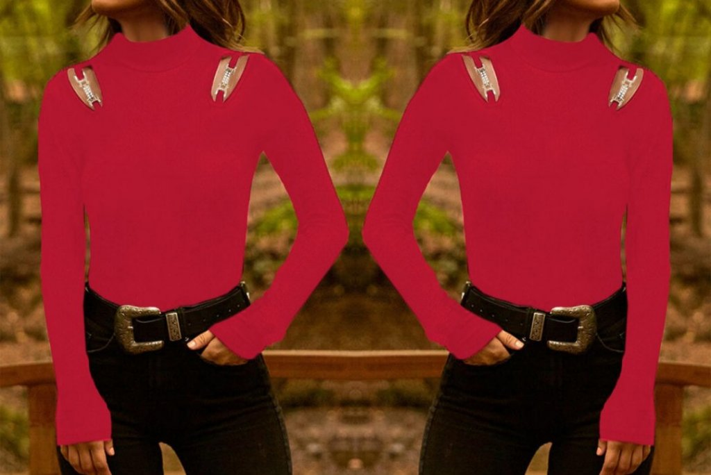 Kadın Uzun Kollu Omuz Dekolte Ve Aksesuar Detay Viskon Bluz